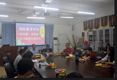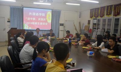 9月11日晚,外语国教两院在7栋313室为远道而来的新生举办“迎中秋 庆国庆”座谈会,邀请2016级各班新生代表、团总支员工会干部一起畅谈如何度过一个有意义的老员工活。公司党总支书记谭玉清及全体辅导员参加了座谈会。会议由办公室主任蔡岳良主持。