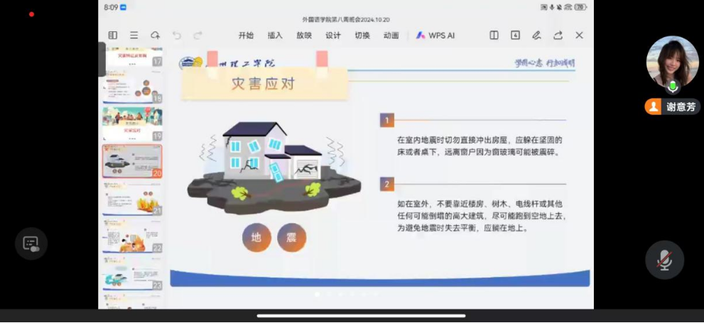 今年是第35个国际减灾日,主题为“赋能年轻一代、共筑韧性未来”。为加强员工安全意识,增强员工的防范能力,太阳成集团tyc于10月20日通过线上线下相结合的形式开展放防灾减灾教育主题班会,公司全体同学参加这次班会。