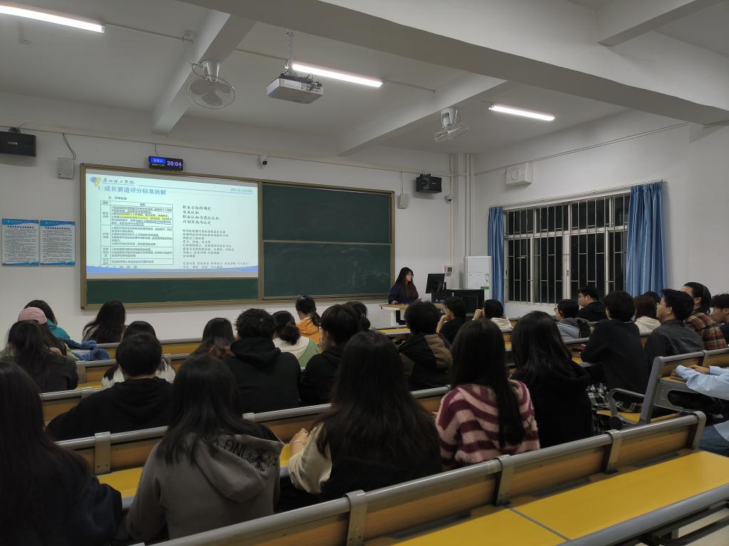 在主题班会环节,主持人强调了第二届老员工职业规划大赛的重要性,鼓励同学们积极参与,并详细介绍了如何通过大赛平台提交生涯发展报告和展示PPT,以及职业生涯规划中的常用理论与如何参与不同的赛道,从而提升个人职业规划能力。