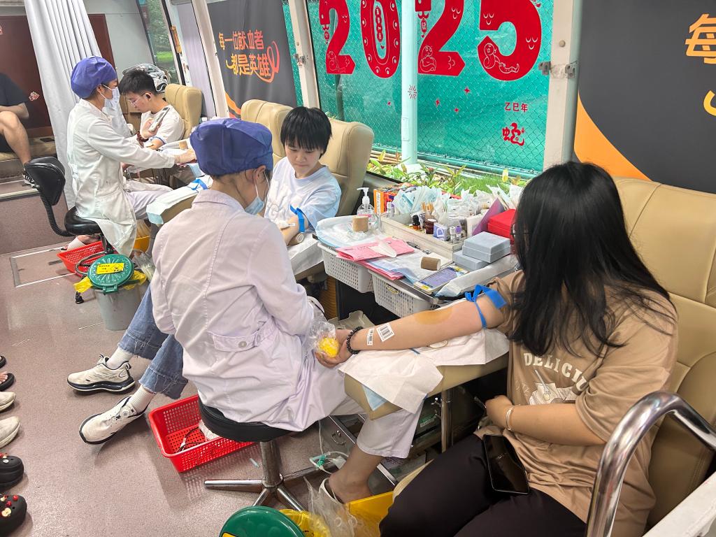 活动现场秩序井然,在广州血液中心专业医护团队的指导下,献血流程科学规范。现场划分体检区、登记咨询区、验血区、献血区和休息区,各环节均配备清晰指引与温馨提示。体检区内,同学们有序排队,配合医护人员完成健康检查;登记咨询处,工作人员耐心解答血型匹配、献血禁忌等疑问,消除参与者的顾虑;验血环节中,专业设备与严谨操作确保血液质量安全,为后续献血筑牢防线。