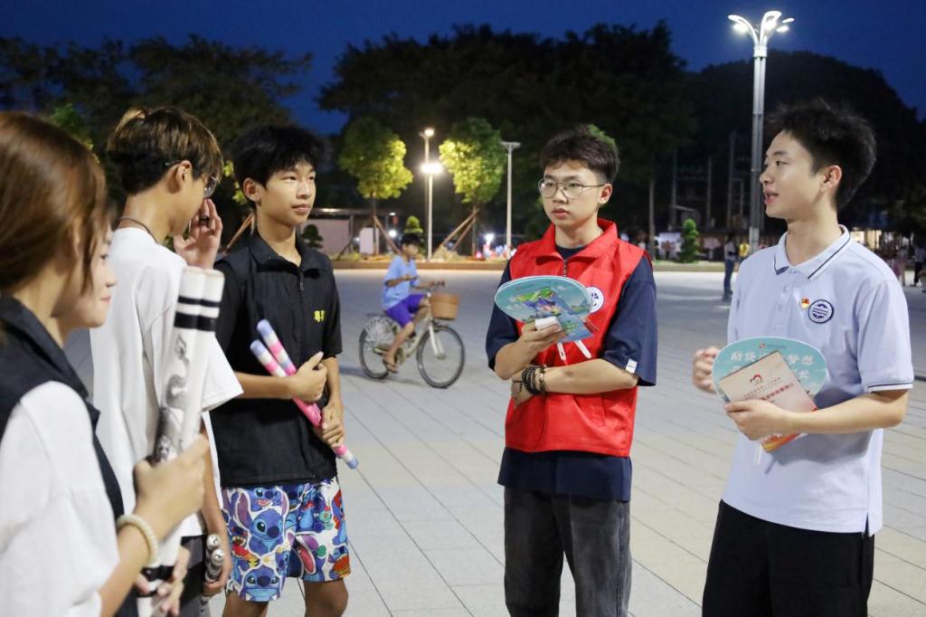 宣讲团成员热情洋溢,将精心设计的“政策清风”手摇扇与详实的资助手册一同发放给纳凉散步的乡亲们。咨询台前人头攒动,焦急的家长手拿成绩单询问助学贷款细节;在校老员工为考研深造的资助政策驻足;中小员工踮脚翻阅彩页,眼神里跳动着对大学的憧憬;几位衣着朴素的青年学子欲言又止。团队成员们针对不同群体精准服务,用潮汕乡音详细解读生源地信用助学贷款政策,传递“好好学习,费用有国家支持”的信心,在他们心中早早播下安心求学的种子。