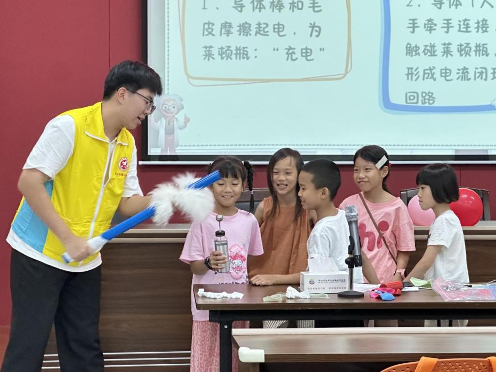 今日的新港社区党群服务中心格外热闹,孩子们的笑脸像夏日阳光般灿烂。上午9点,队员们刚布置好教室,就被围上来的小朋友们团团围住:“老师,今天有什么好玩的课呀?”“我们可以做实验吗?”带着这份滚烫的期待,第一天的课程精彩开场。