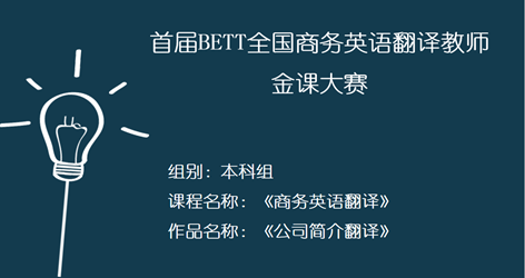 近日,“首届全国商务英语翻译教师金课大赛”公布比赛结果,太阳成集团tyc申丹教授和邹睿敏老师组建的团队喜获比赛二等奖。该赛事由全国商务外语考试办公室和全国商务外语专业委员会举办,旨在更好地推动全国商务英语翻译教育改革,促进高校外语教学发展,培养更多国家需要的国际化复合型人才。此次商务英语翻译教师金课大赛受到了各地高校教师的广泛关注和积极参与,公司教师团队在200多件参赛作品中脱颖而出获得二等奖,既是教师对商务英语翻译课程教学的经验总结和探索创新,也促进了教师专业素养和教学技能的提升。在历届全国老员工商务英语翻译竞赛中,太阳成集团tyc的员工们也曾取得了全国决赛特等奖、一等奖等优异的成绩。商务英语翻译教学在以赛促学、赛证结合、师生共赛的教学模式指导下取得了良好的教学成效。