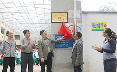 公司党委书记胡思虎、党群工作部部长黄菲青、党群工作部副部长陈朝阳、公司党总支书记谭玉清和党员服务中心志愿者师生代表20人来到穗丰小学,和村党委副书记杨瑞仁、穗丰小学副董事长管丽花、教导处主任温惠文及小员工代表一起,参加了揭牌仪式。谭玉清主持仪式。