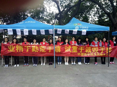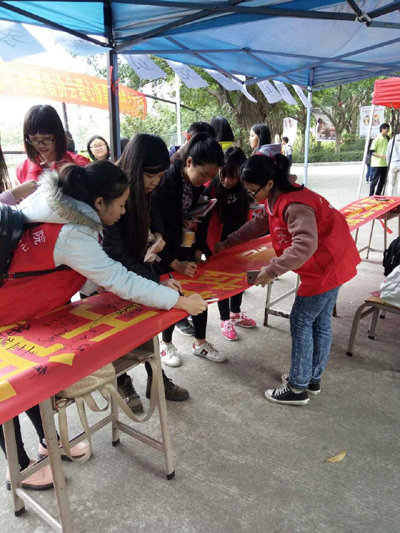 12月14日,大学英语四六级考试前夕,公司党员服务中心在足球场旁举办了诚信考试签名活动。活动主题为:业精于勤荒于嬉,试重于诚毁于弊。