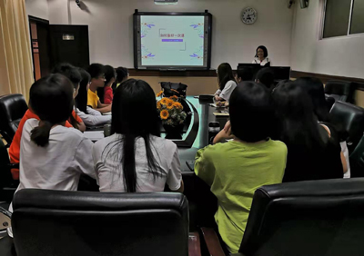 会上,冯老师结合自身多年的教学经验,围绕“如何备好一次课”的主题进行了业务培训的讲解。她指出,志愿者老师们在课件制作中要先显示出自己的教学目的,再相应地设置任务,比如游戏、训练、文化介绍等;根据课堂教学环节,先导入上节课的知识点,了解同学们对知识的掌握程度,再进行新内容的讲解,最后总结和布置任务。