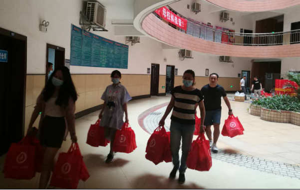 每日清晨,辅导员为当批返校的毕业生领取午餐礼包(牛奶、面包、矿泉水、水果、防护口罩),打扫布置班会现场,迎接毕业生们的到来。班会现场,公司党政领导为每位返校的员工暖心送上午餐礼包与她们亲切交谈,关心询问大家的生活近况、毕业去向及家庭状况等情况。外院女生较多所住的宿舍楼层高,行李搬运困难,一些有私家车的教工主动将自己的车辆贡献出来,不辞辛劳,一趟趟地免费义务为毕业生们载运行李,并将她们安全无虞地护送到了公司门口;还有办公区为毕业生办理各种毕业手续时每位老师暖心的关怀与笑容,这些暖心周到服务都给这趟因为疫情变得格外特殊而匆忙的毕业离校旅程增添了无限温暖与美好的回忆。