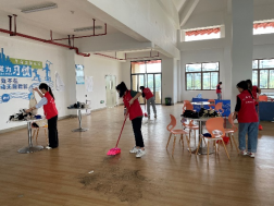 在清洁过程中,大家快速分工好清洁工作,有的人在扫地、有的人在拖地、还有的人在擦拭,随处可见志愿者忙碌的身影。他们尽职尽责,在场地里寻找着“猎物”,任何细小的垃圾都逃不过他们的“火眼金睛”,把教工之家当成自己家一样。