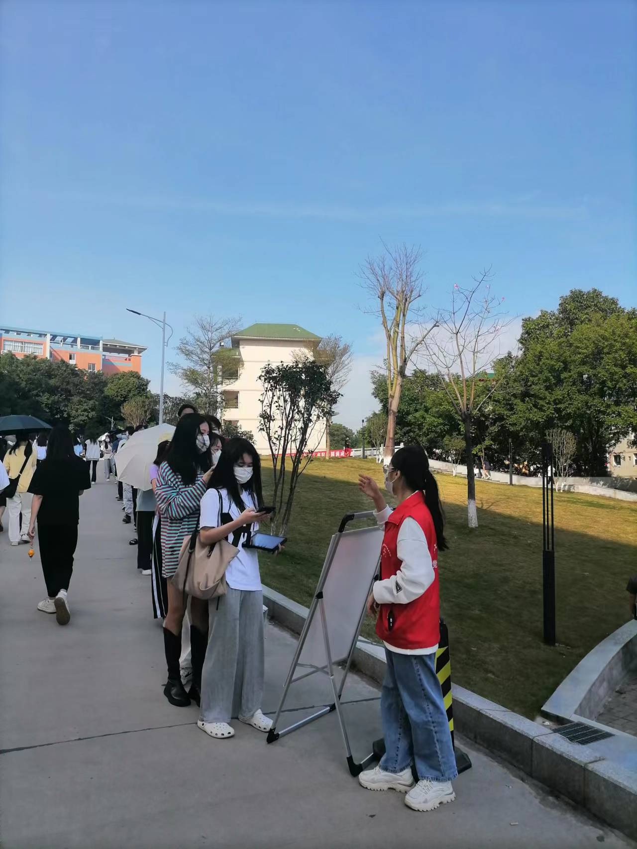 “请大家佩戴好口罩,依次排队,保持一米以上安全距离;请提前出示粤核酸码,方便工作人员录入信息……,在核酸采样现场,公司志愿者们积极引导同学们有序排队,全力营造一个有序、高效的检测环境。维护队伍秩序、提醒师生们扫场所码、引导师生有序前往核酸检测通道,这些都有效保证了核酸检测工作高效、有序地进行。