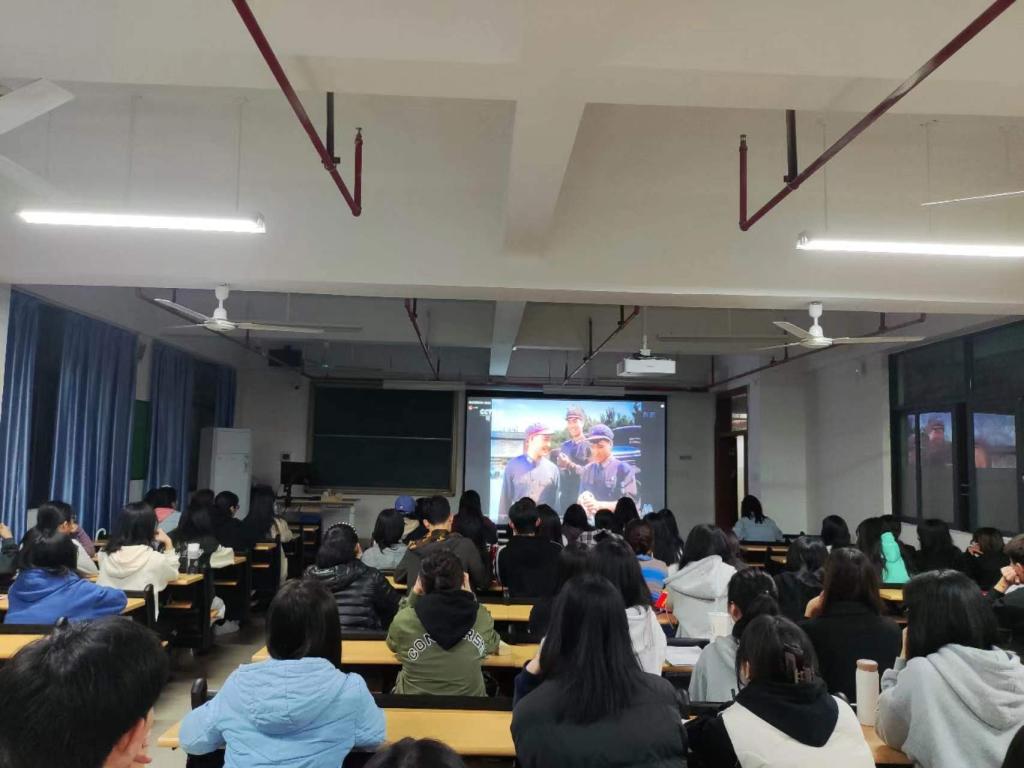 同学们聚精会神地观看《雷锋》,从中了解到雷锋为共产主义奋斗的无私奉献,也对雷锋同志“全心全意为人民服务”的精神产生了强烈的共鸣。