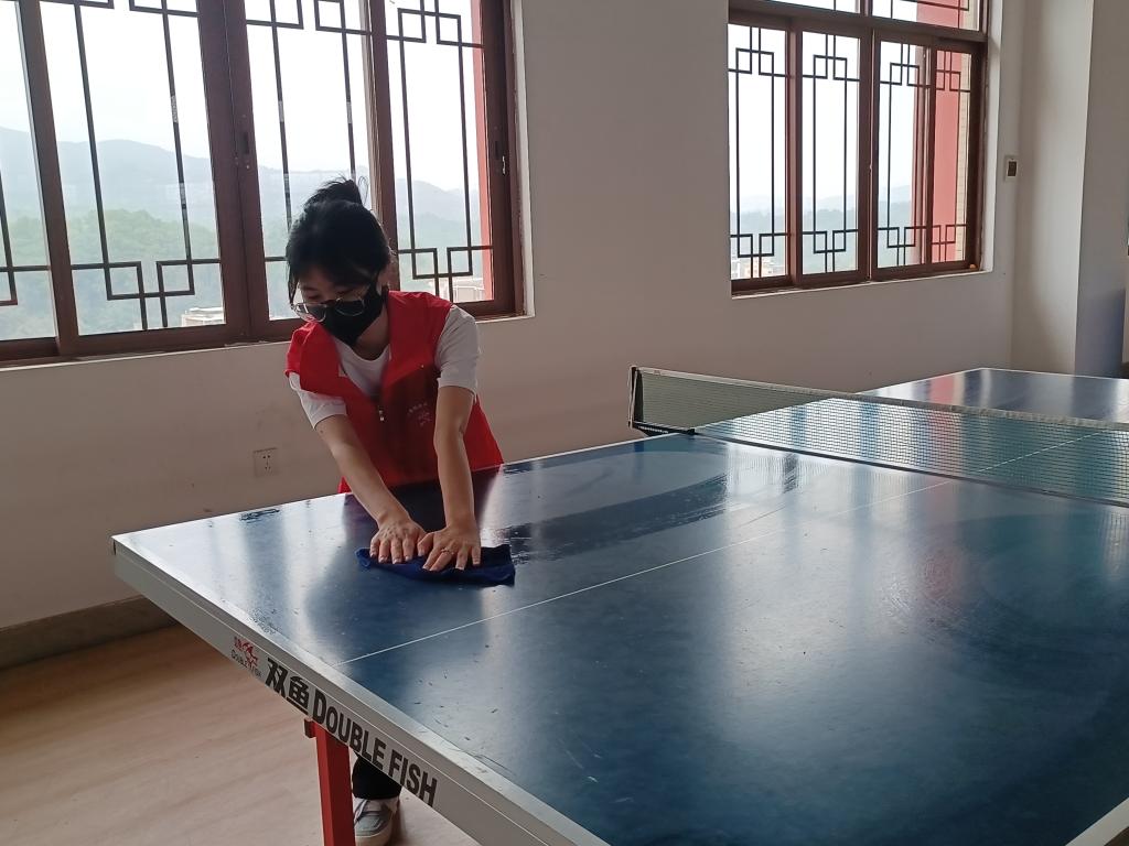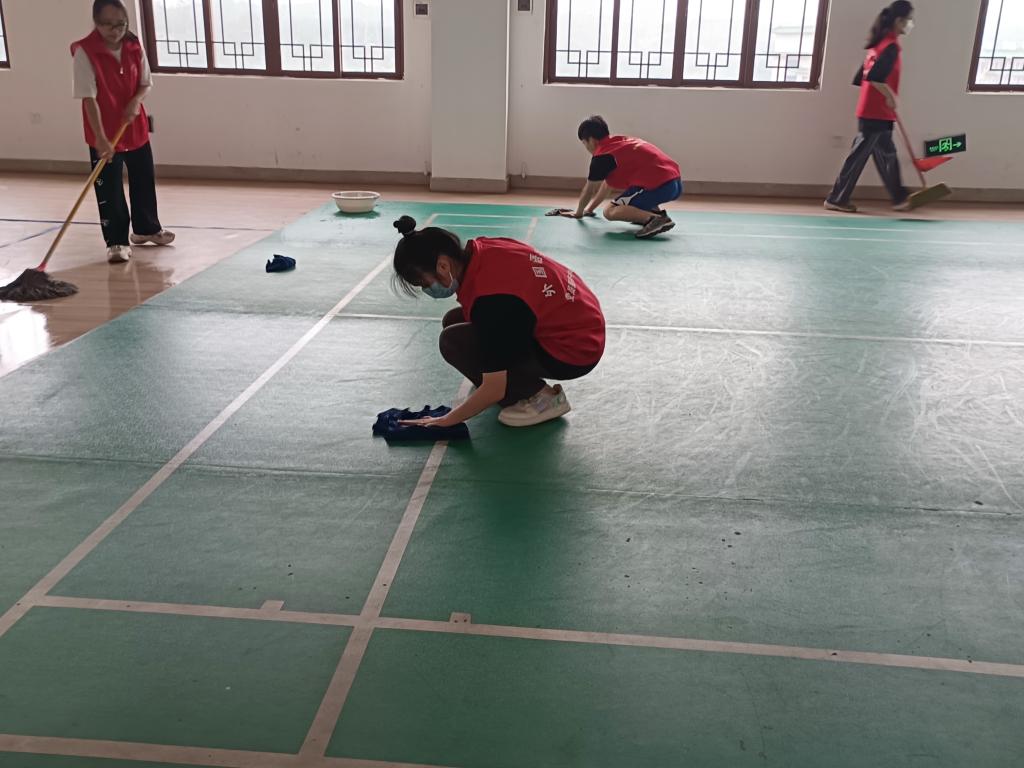 志愿者们手拿拖把、扫把、抹布等清洁工具,分工合作、齐心协力,秉持着“全覆盖、无死角、彻清理”的原则对羽毛球场地地胶、卫生死角、乒乓球桌、运动器材等进行了深度清洁。清洁过程中,公司志愿者充分展现了“不怕脏、不怕苦、不怕累”的志愿服务精神。在志愿者们的努力下,教工之家变得焕然一新,整洁且干净。