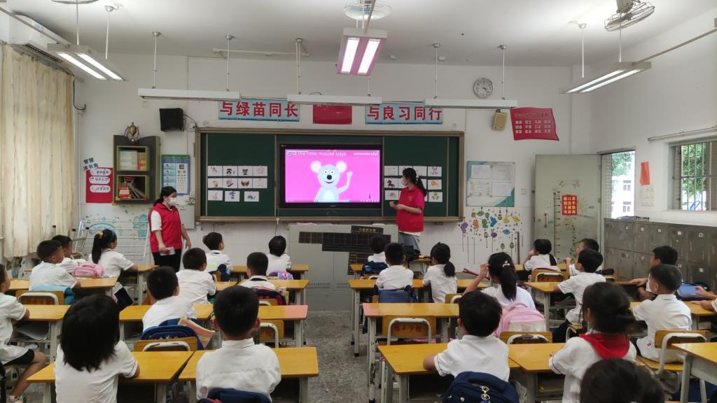 支教期间,公司暑期社会实践团队成员化身为“小老师”,通过采取多种多样的活动形式,让孩子们积极参与课堂之中,提高学习英语的兴趣,真正地参与到课堂中去感受英语的魅力。有的老师使用单词闪卡,口语对话,角色扮演等方式鼓励员工开口说英语。在师生的来回互动间,同学们已经将单词与句型牢牢记下。