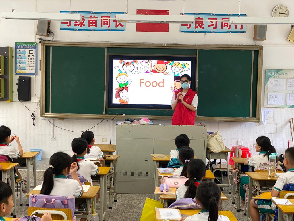 本次英语课的主题是食物,暑期社会实践团队成员们通过展示一些食物的图片,引导同学们对单词的读法和意思进行学习,以猜词游戏的方式激发同学们的学习兴趣,加深他们对单词的理解和记忆。最后,小老师们鼓励同学们运用所学的句型进行情景对话。通过本节课的学习,同学们不仅学会了食物的英文,而且能够与小伙伴讨论自己喜欢的食物,增强了同学们珍惜粮食的意识。