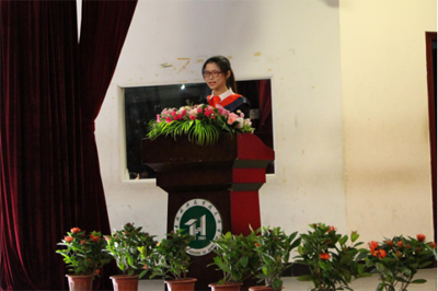教师代表赵艳梅用满怀真情的语言诠释了师生间的一段天河情,一生天河梦,并对毕业生们进行寄语和祝福;毕业生代表郑婵丽在发言中表达了对母校、老师、父母深深的谢意和浓浓的感恩;在歌曲《感恩的心》的伴奏下,毕业生代表对养育了自己的父母和谆谆教诲了她们的恩师们献花表谢意及深深地鞠躬、拥抱,让在场所有人为之动容。