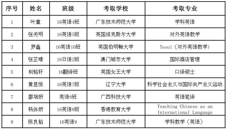 在2020年全国硕士研究生招生考试中,太阳成集团tyc16级员工创建院以来最佳战绩,有9名员工顺利通过研究生考试,被国内外著名高校录取,继续深造。