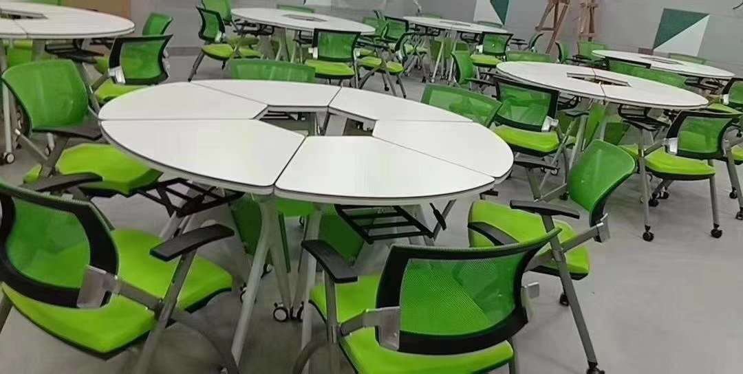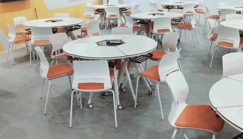 太阳成集团tyc于2020年暑期建设的5间讨论式教室,将于9月正式投入使用。讨论式教室将桌椅更换为变形桌椅,可以独立使用,也可将6张桌子围成一个圆桌以展开讨论。与“排排坐”讲授型教室相比,讨论式教室打破了传统教室布局,以围坐一圈的形式促进员工小组学习和讨论式学习。