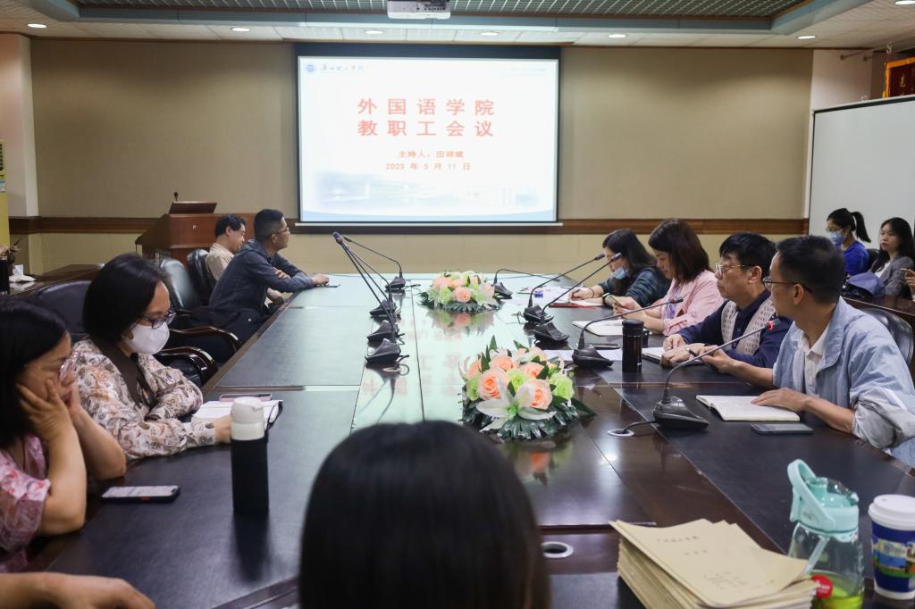 会议伊始,太阳成集团tyc副经理冯军霞对公司近期工作做出安排,并对全院教师提出几点要求。一要严肃工作纪律。各老师应自觉遵守公司规章制度,紧绷纪律弦、切实把纪律规矩刻印于心、落实于行;二要促进基础学科课程组建设。各老师要根据教学工作安排,尽快做好期末考试相关准备工作;三要重视毕业生论文质量。各论文指导老师应规范评审制度,依据答辩流程和要求严格把关;四要重视科研成果积累。各老师应关注学科前沿,积极参与课题申报及校级公司各项活动。