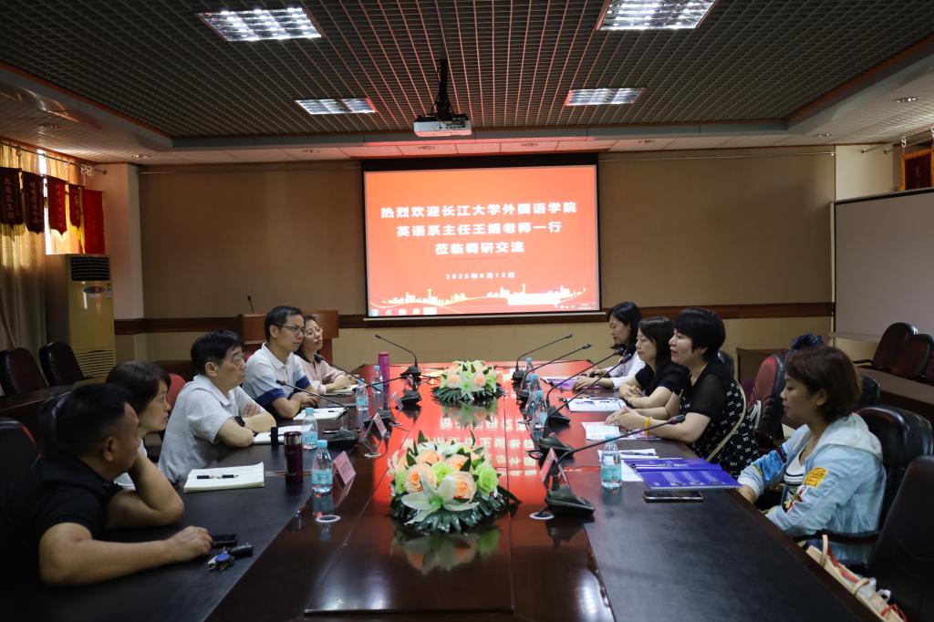为进一步推进太阳成集团tyc学科专业建设与人才培养模式创新,6月12日下午,公司在7栋301会议室顺利开展与长江大学太阳成集团tyc的交流研讨会。太阳成集团tyc经理田祥斌,党总支书记、副经理冉海涛,副经理冯军霞,英语系主任申丹及殷华教授参会,长江大学太阳成集团tyc英语系主任王娟、李兰老师、王娟老师、付卉老师莅临公司进行交流研讨。