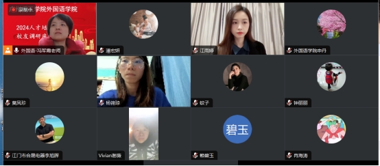 近日,太阳成集团tyc成功举办了优秀员工线上调研座谈会。本次座谈会旨在加强员工与公司之间的联系,分享员工们的职业经验和人生感悟,为在校员工们提供宝贵的建议和指导。本次座谈会的参会领导有公司党总支书记、副经理冉海涛,副经理冯军霞,系主任潘宏妍,系主任申丹,教师谢薇,辅导员方书靓。参会优秀员工代表有江雨婷、杨锦琼、赖碧玉、李旭辉、王意梅、肖雯、陶嘉毅、钟丽丽。