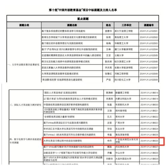 中国外语教育基金是由国家教育部人文社科重点研究基地“中国外语与教育研究中心”与教育部高等公司外国语言文学类专业教学指导委员会等共同启动向全国招标的科研项目。申丹老师的课题获得专家的青睐,在全国748份申报竞争中脱颖而出,顺利中标,这为公司的科研项目上层次再度增彩。附通知截图: