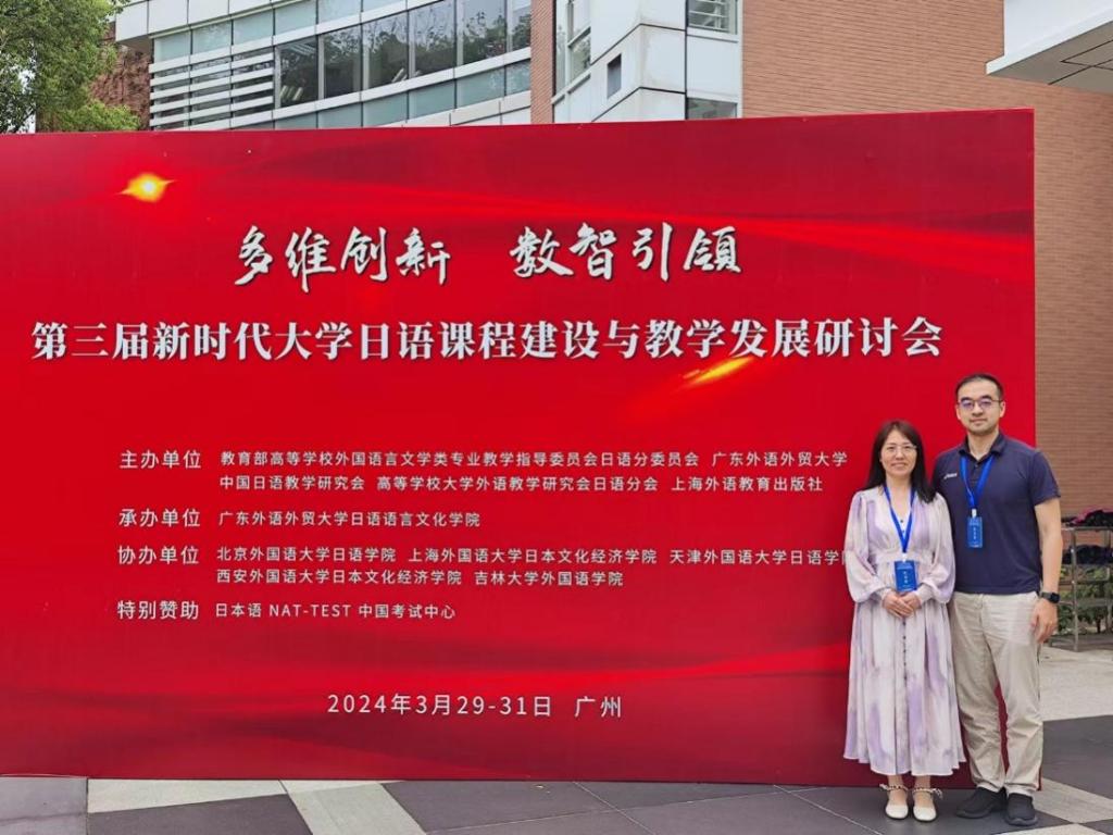3月30日,由教育部高等公司外国语言文学类专业教学指导委员会日语分委员会、广东外语外贸大学、中国日语教学研究会、高等公司大学外语教学研究会日语分会和上海外语教育出版社主办的“多维创新·数智引领——第三届新时代大学日语课程建设与教学发展研讨会”在广东外语外贸大学召开。太阳成集团tyc江小娟副教授、杨硕老师参加了本次会议。