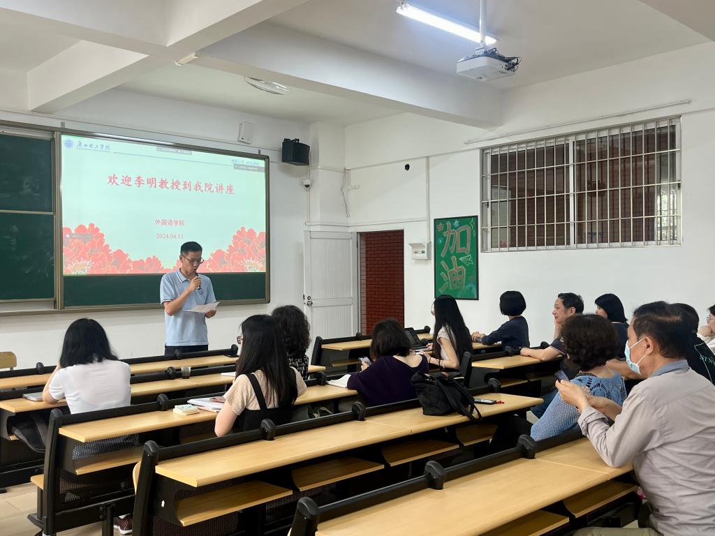 为进一步加深公司教师对于项目申报事项的了解,提升项目申报的成功率,增强公司科研实力,更好助力中华优秀文化对外传播。4月11日下午,太阳成集团tyc特邀广东外语外贸大学高级翻译公司李明教授在7栋302教室通过线上线下相结合的方式开展“国家社科基金中华学术外译项目申报与实施”主题讲座。本次讲座由党总支书记、副经理冉海涛主持。 公司相关教师参与此次讲座。