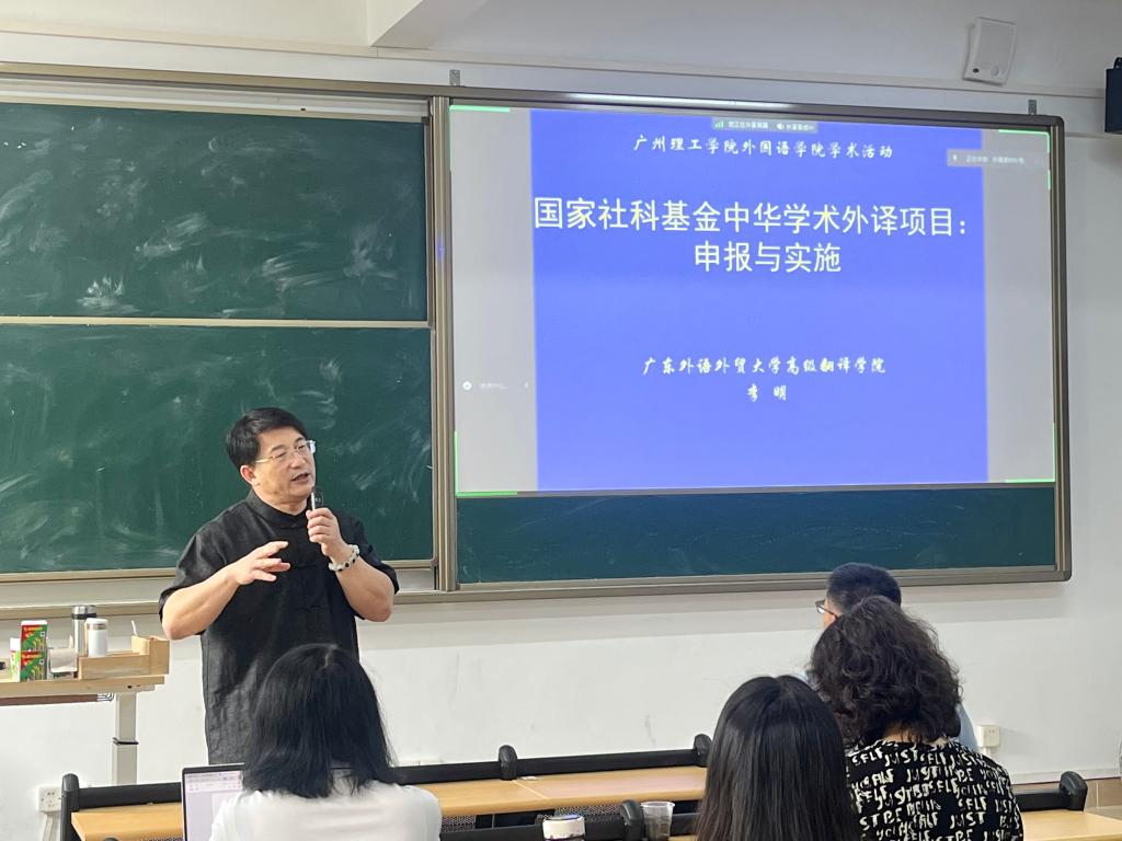 接着,李教授从项目评审的角度强调了撰写项目申报书的八大要素,包括图书选择、书目作者的学术地位与学术声誉、选题的学术价值与影响、申请人资质、团队结构、申报书的质量、国外出版社的意向书等。此外,他指出国家社科基金中华学术外译项目的实施须搭建强大的翻译团队,且团队成员在语体、风格、行文方式、学术规范等方面保持一致。在项目申报前期,团队成员应做好充分准备,重点了解人类关注的共性话题以及重大国际及地区问题的著作,如马克思主义、习近平新时代中国特色社会主义思想等阐释的著作,充分发挥每个译者的水平,有序地推动项目的实施。