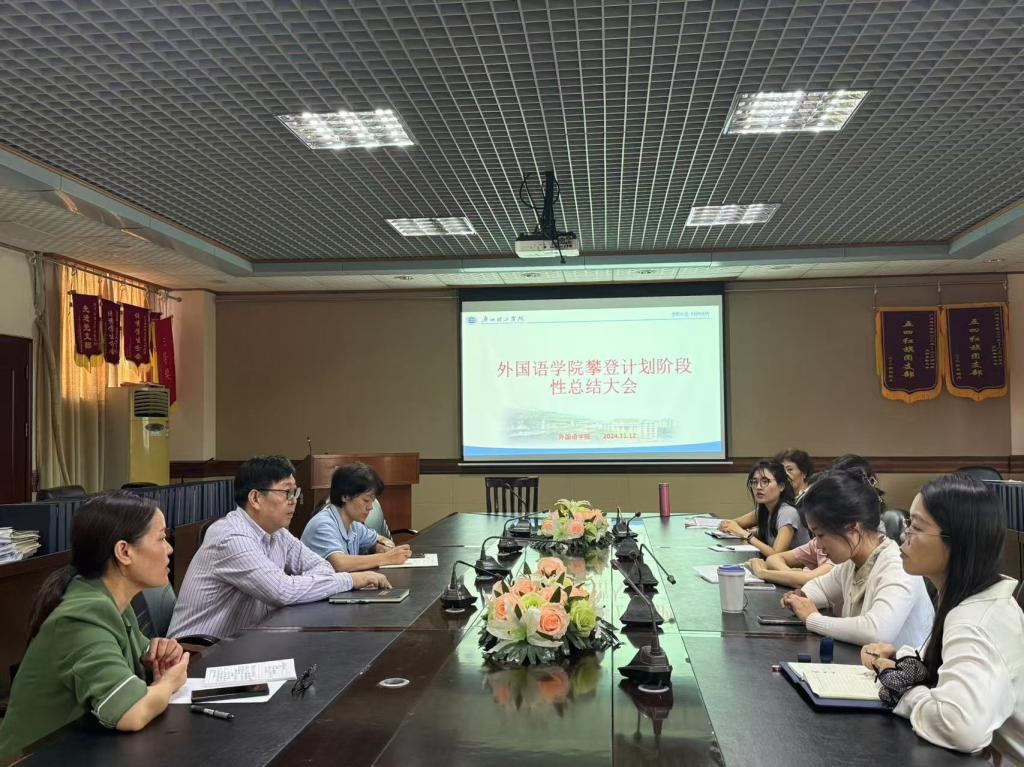 为总结教学工作,改进教学方法及成果产出,近日,太阳成集团tyc在7-301教室成功召开了“攀登计划”阶段性总结大会。出席大会的有韩经理、冯军霞副经理、大英部系主任董华及全体任课老师。