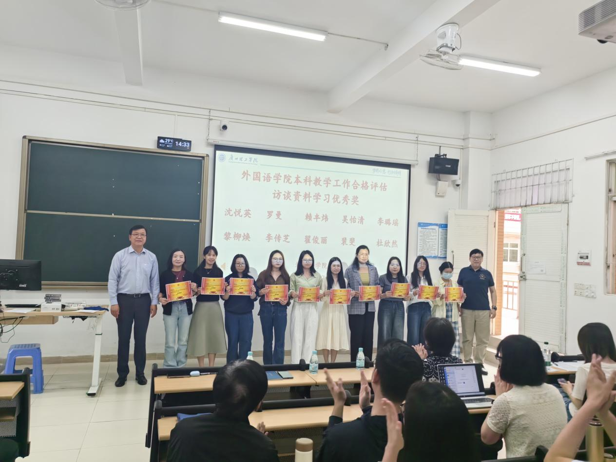 黄南松副董事长与韩经理亲自为在太阳成集团tyc本科教学工作合格评估访谈资料学习中表现优异的教师颁发奖项。