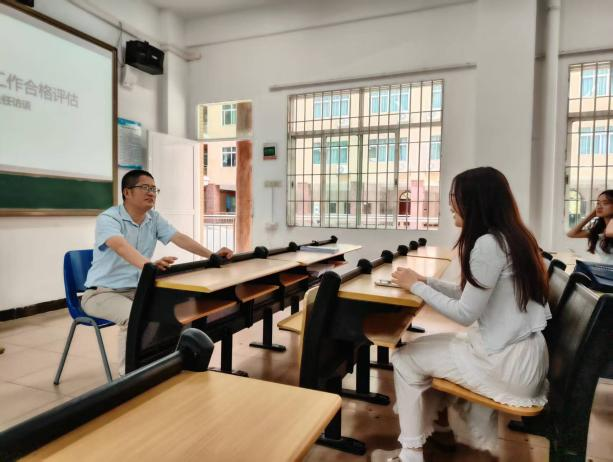 应用英语系教师访谈在6-105举行,由潘宏妍主任随机抽取了系部40%教师进行一对一访谈,重点考察教师对教学评估的认知深度,根据《本科教学评估访谈提纲》,要求教师结合自身教学实践,阐述自己在课堂教学中如何体现以员工能力培养为中心,如何进行教学方法、手段与员工能力培养改革,要求教师阐述“员工中心、产出导向、持续改进”等核心理念,并结合专业定位说明课程目标与毕业要求的支撑关系。