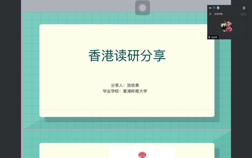 冯经理首先为参会同学介绍了三位与会嘉宾,并对她们的到来表示热烈欢迎。随后,效依果为同学们带来了香港读研分享。她首先给同学们分享了她的个人经历,提醒同学们绩点和雅思的重要性,鼓励同学们努力学习,取得好成绩。随后她介绍了几所香港的公司,并详细解读了申请港校的条件和流程。最后,她鼓励同学们要相信自己,只要坚持不懈,终将遇见优秀的自己。