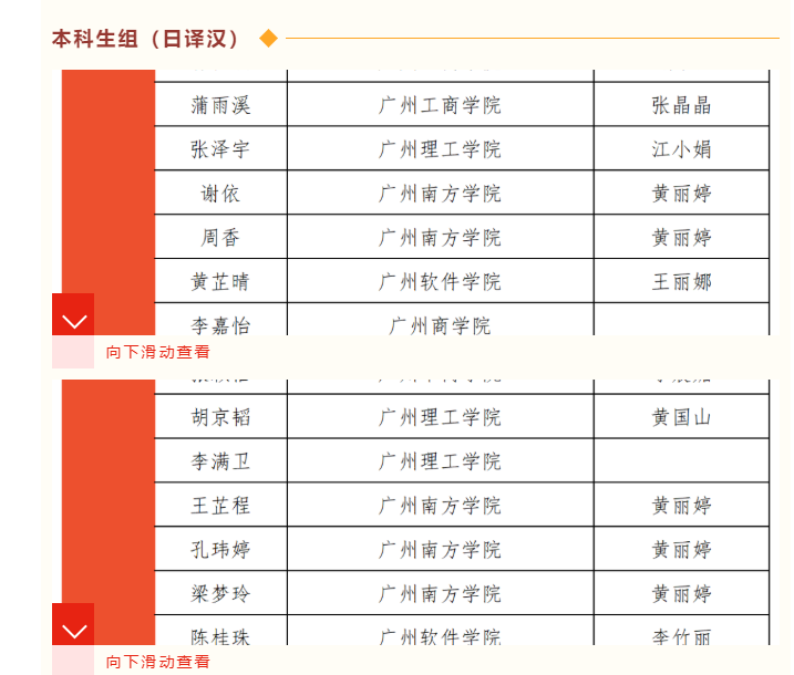 (黄国山)在2022年度由中国外文局亚太传播中心(人民中国杂志社、中国报道杂志社)主办、中国日语教学研究会、中国日语教学研究会华南分会及广东外语外贸大学东方学研究院协办的第五届人民中国杯国际翻译大赛中,公司由江小娟老师指导的20日语2班张泽宇同学获得本科组(日译汉)二等奖,黄国山老师指导的21日语2班胡京韬同学获得本科组(日译汉)三等奖。20日语2班李满卫同学获得本科组(日译汉)三等奖。另外,21日语2班邱泽晋等同学获得本科组(日译汉)优秀奖。