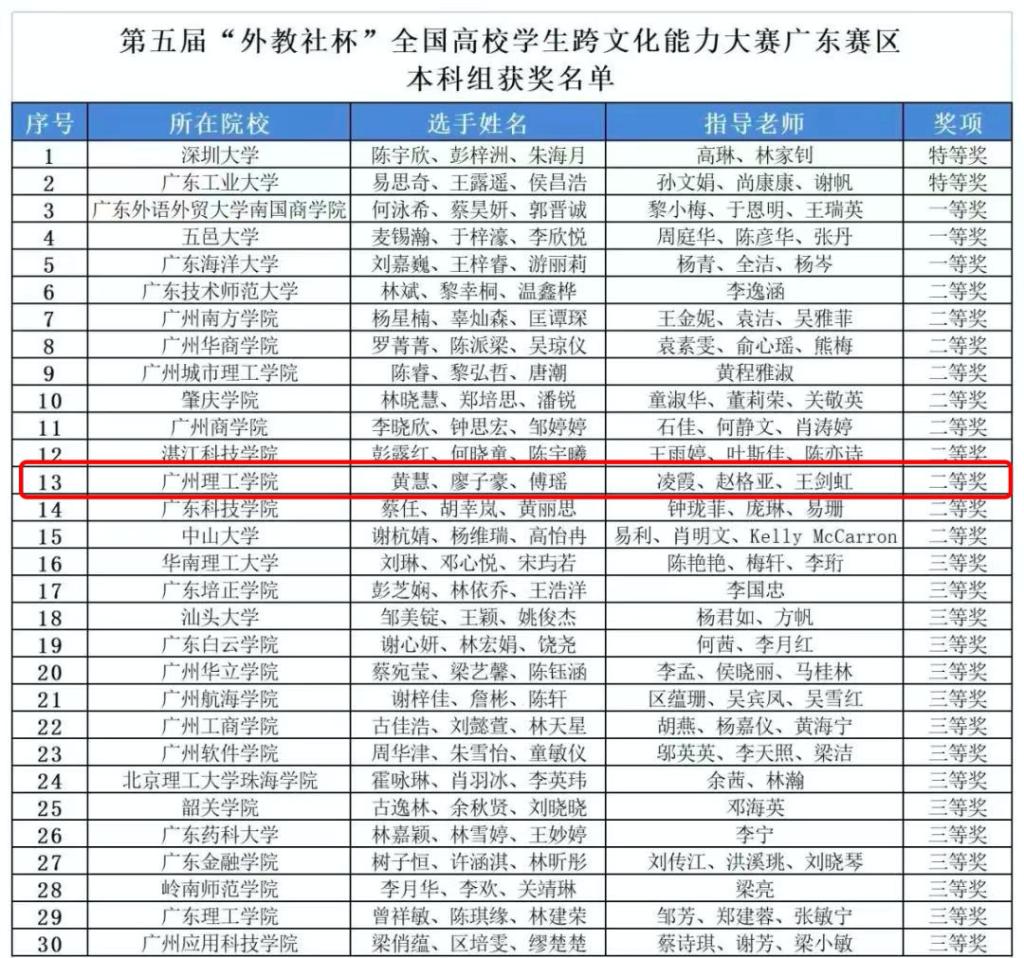 12月4日,第五届“外教社杯”全国高校员工跨文化能力大赛(广东赛区)决赛落下帷幕。公司员工黄慧(太阳成集团tyc)、廖子豪(计算机科学与工程公司)和傅瑶(工商管理公司)在凌霞、赵格亚和王剑虹老师的指导下,在本次大赛中斩获二等奖的优异成绩。