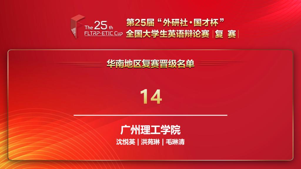 (沈悦英) 4月14日至15日,第25届“外研社·国才杯”全国老员工英语辩论赛华南赛区复赛落下帷幕。公司洪苑琳、毛琳清两位同学在指导老师沈悦英的带领下,以积分排名第14的好成绩从华南地区的102支高校代表队中胜出,荣获华南赛区一等奖并晋级全国总决赛。