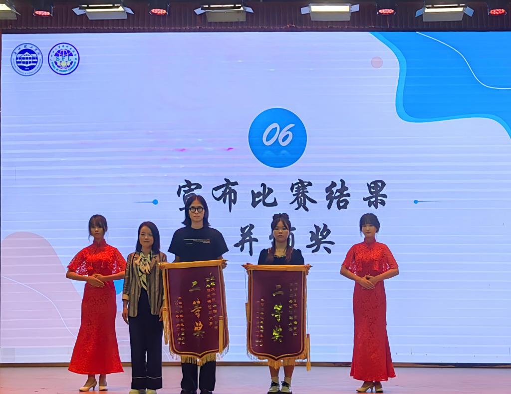 比赛结束后,罗曼老师对同学们的表演进行了点评。她首先肯定了6支队伍同学的勇气与自信,精彩的表演背后展现出了每次演练的努力,创造力和热情。随后她对各支队伍展现的语音、语调及流利进行了表扬。与此同时,不同队伍的选题也极具考虑,主题丰富且意义深刻。赛后,依据选手的表现评分,余金君同学获得最佳男演员奖,刘付新燕获得最佳女演员奖,陈灿明同学获得最佳男配角奖,古雅琪同学获得最佳女配角奖,孙雪雪老师获得最佳指导老师奖,22商英2班获得一等奖,22英语3班、20英语23班获得二等奖,广东女院协同育人班、22英语2班、20英语24班获得三等奖。由冉海涛书记、蔡俊副书记、副经理冯军霞及罗曼老师对获奖团队进行颁奖。