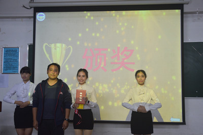 团总支书记李昉为获得一等奖的选手颁奖