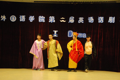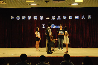 朱甫道教授致开幕词后,比赛正式开始。在表演中,配音们声情并茂,演员们动作、表情生动自然,改编过的台词幽默风趣,现场欢声笑语不断。表演各具特色,风格迥异。同学们在比赛过程中充分利用了投影、音乐以及特色服装来为表演增添亮点。多样化的题材、流利的口语、生动的演技、各式的器材与饱含感情的对白吸引了同学们的眼球,也深得领导和评委老师的好评。