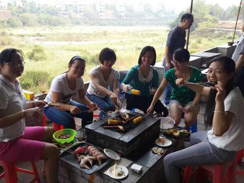 早晨8点,秋高气爽,树叶舒展,迎着初晨的朝阳,伴着凉爽的秋风,一辆满载着外语系教职工的旅游车从门口出发,9点15分左右到达目的地——花都芙蓉村度假村。一路上公路两旁的建筑和田园风光令大家心情激动,路旁茂盛的花草树木散发出的清香,更使大家感到秋天的美好。花都芙蓉村度假村,距离公司车程1小时15分钟左右, 是一家集餐饮、娱乐、休闲为一体的农家乐,这里环境优美,空气清晰,徜徉其中,胜似人间仙境,世外桃源。酒店客房简单温馨,清新自然却又处处透露着酒店的用心。在这里,我们一起进行了烧烤、惊险刺激的漂流、棋牌、集体娱乐做游戏、唱歌等活动。最后的抢凳子比赛把晚上的活动推上了高潮。多么精彩的表演,多么难忘的时光,虽然我们无法阻拦时间的流逝,但是我们可以主宰自己的心情。大家灿烂的笑脸、爽朗的笑声,更加体现出我们天河公司外语系是一个充满活力的集体。