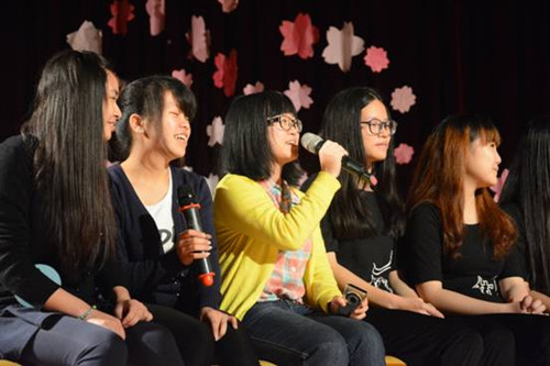 晚上7点半,炫舞流协会带来的舞蹈《wolf》拉开了晚会帷幕,节奏性的韵律和动感的舞步让在场的观众热情澎湃,掀起晚会第一轮小高潮。紧接着,舞蹈、歌曲和话剧等节目轮番上演。我系团总支·员工会女生部干事还为今晚的晚会精心准备了舞蹈《roly poly>。晚会期间,院十大歌手冠军陈扬文的歌曲串烧成为全场最大亮点,他用精湛的唱功和独特的舞台魅力把每首歌都演绎的淋漓尽致,歌曲与吉他声合二为一,把全场气氛推向高潮,尖叫声一波接一波。整场晚会历时两个小时,节目循环渐进,紧紧相扣,高潮迭起,得到场下观众热烈反应。在晚会接近尾声时,大众评审上台投票选出他们今晚最喜爱的节目。本日语131班全班整齐合唱英文歌曲《my love》,展现了她们激情洋溢,团结向上的精神,受到观众热棒,获得人气奖。其他班级则获得纪念奖。