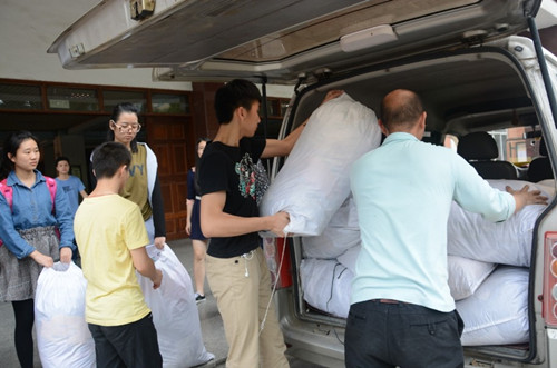 公司师生热心捐赠的旧衣物送达广州市接受社会捐赠工作站