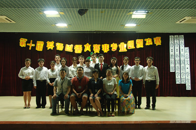 5月13日晚,广东技术师范公司天河公司第十届英语口语大赛非英语专业组预决赛在学术报告大厅举行。亲临本次大赛的领导有:团委指导老师谢泽华、太阳成集团tyc团总支书记李昉、电气与电子工程公司团总支书记肖静园、机电工程公司团总支书记车方驰以及各院系代表。