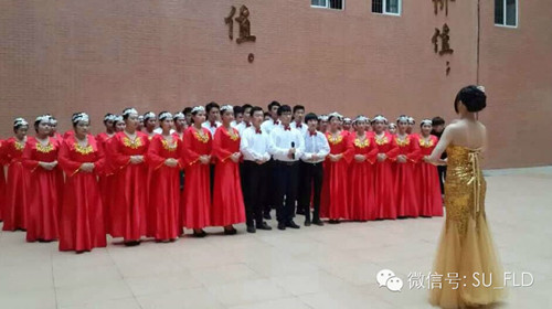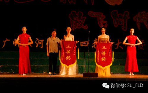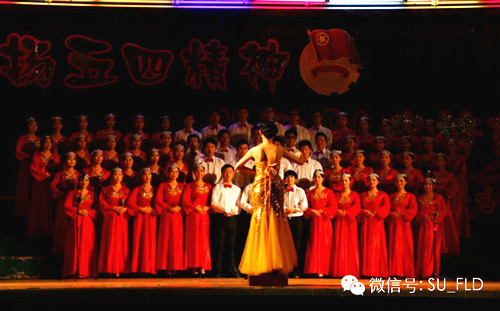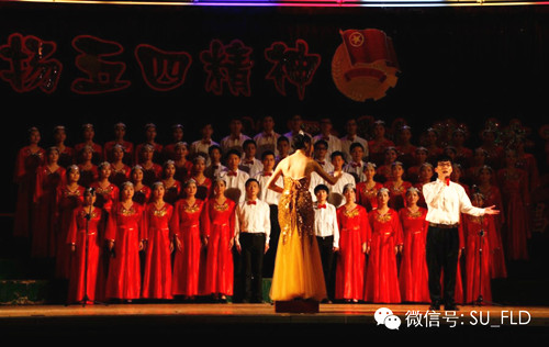 我系五四合唱队员齐声演唱《红旗飘飘》和《站起来》两首曲目,高昂的激情,扎实的唱功,集中展现了外语系青年员工的青春活力。必选曲目《红旗飘飘》唱出了对祖国诚挚的祝福,自选曲目《站起来》唱响了外语系青年学子实现梦想的主旋律。合唱队员们穿着整齐耀眼的服装,一上台便赢得了台下观众们阵阵掌声和呐喊。我系五四合唱队在本次比赛中荣获三等奖。