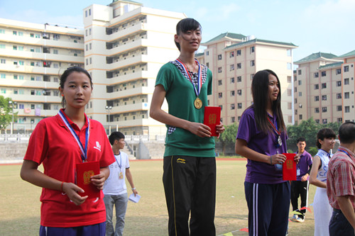 本英语132班梁晓菲: 女子组跳高第二名、 女子组跳远第八名