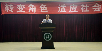 接着,党总支书记谭玉清老师上台讲话。书记要求学子们要树立良好的人生观为起点去学习适应社会同时给予了学子们真挚的祝福。
