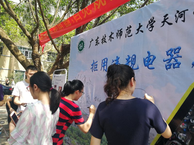 (通讯员:陈晓霞)6月28日上午,公司在七栋综合教学楼前举行了“违规电器警示展”活动。公司团学工作人员积极参与宣传工作,她们认真宣传,细心给每一位同学介绍安全与违规等方面的有关问题、并对同学们的提问进行耐心的解答,引导员工签名版留言签名等,受到公司相关部门一致好评。