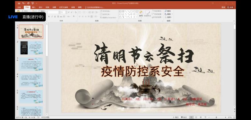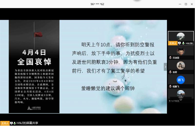 (通讯员:梁颖琪)2020年清明节的来临,受新冠肺炎疫情影响,4月3日下午,公司按照公司工作部署,结合实际,做出行动,突出重点、以云班会的方式,高效地开展了以“清明云祭承传统、疫情防控系安全”为主题的班会活动。