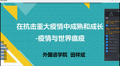 经理第一课虽然无法面对面进行,但学员们没有因此懈怠。田经理授课期间,学员们认真听讲,通过互动面板积极主动与田经理交流互动。经理授课方式新颖独特,讲述的例子贴近生活、通俗易懂,营造了一种良好的课堂氛围。思政课的最后,他结合疫情期间员工在家学习的情况,鼓励外院学子要有战“疫”担当和责任意识,希望大家充分利用好在家学习的条件,合理安排好时间,合理利用好网课资源,提高学习效率,培养好家庭关系。