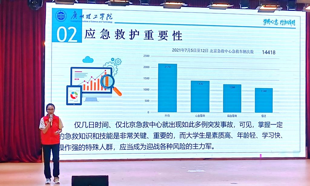 代表公司做应急救护演讲同学是19英语3班的张美霞,她演讲的主题为“危机关系你我他,应急救护靠大家”。张美霞同学首先对现场同学是否了解相关应急知识,是否具备相关救护技能进行了调查,而后指出了校园安全对于师生、公司及家庭的重要性。此外,张美霞同学还向我们详细地介绍了对心脏骤停的患者的急救方法及我们学习和掌握相关应急救护技能的4种途径;演讲的最后,张美霞同学呼吁我们青年老员工应该掌握“能救、会救、敢救”的技能。