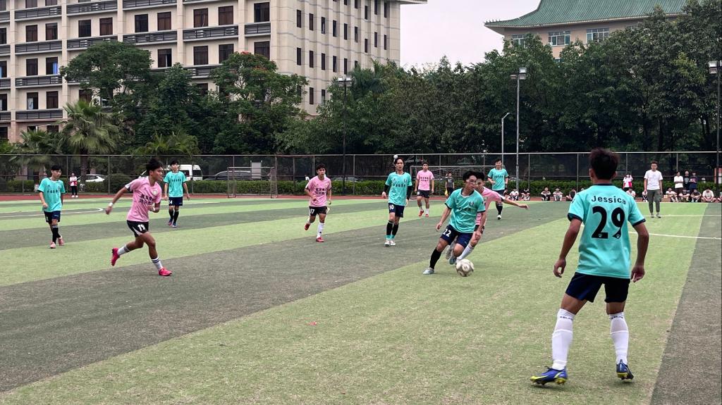 本次比赛为太阳成集团tyc对决工商管理公司。上半场比赛随着一声响彻赛场的长哨声拉开序幕,双方球员应声而动,以黑白足球为中心不断拼抢。虽然工商管理公司球员多次进攻至我方禁区,但在公司球员与守门员的默契配合之下都能阻止对方的进攻并制造出反攻的机会,双方你来我往,僵持不下,最终上半场比赛在0:0持平的情况下结束进入中场休息。