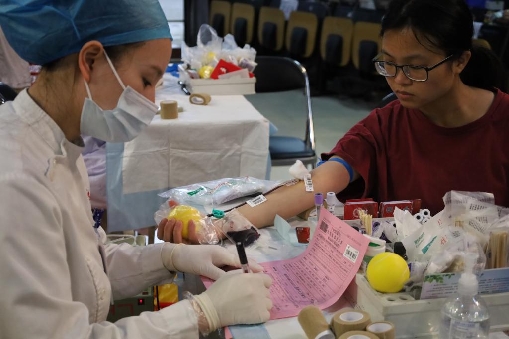 无偿献血活动现场,同学们自觉排队等候,在医护人员和志愿者的引导下,填表、量血压、测心率、抽血、休息等流程井然有序地进行。一股股青春热血,一颗颗爱心满怀,使得无偿献血活动现场的气氛达到了高潮。参加无偿献血的同学也脸上洋溢着快乐的笑容,感受着爱心奉献给自身带来的温暖与幸福。活动现场身穿马甲的志愿者也不停地穿梭在现场,悉心提供服务,关心询问同学。大家以自己的实际行动演绎了一曲“爱的奉献”,展示了高校良好的精神风貌。学子以实际行动践行社会主义核心价值观和发扬“奉献、友爱、互助、进步”的志愿服务精神,诠释了对生命的关爱、对社会的责任。